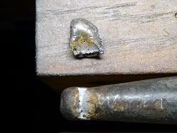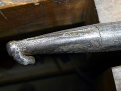 To fix this ersatz bayonet scabbard, I proceeded in two stages : removal of the blur and then straightening. I started to lift the burr with a lever to remove as little material as possible.